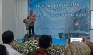 Iki diandharake dening Kepala Kepolisian Metro Kota Tangerang, Komisaris Senior Dr. Raden Muhammad Jauhari, S.H., S.I.K., M.Si., nalika acara Akhir Tahun Kepolisian Metro Kota Tangerang 2025 sing dianakake ing Markas Besar Kepolisian Metro Kota Tangerang dina Selasa (31 Desember 2025).