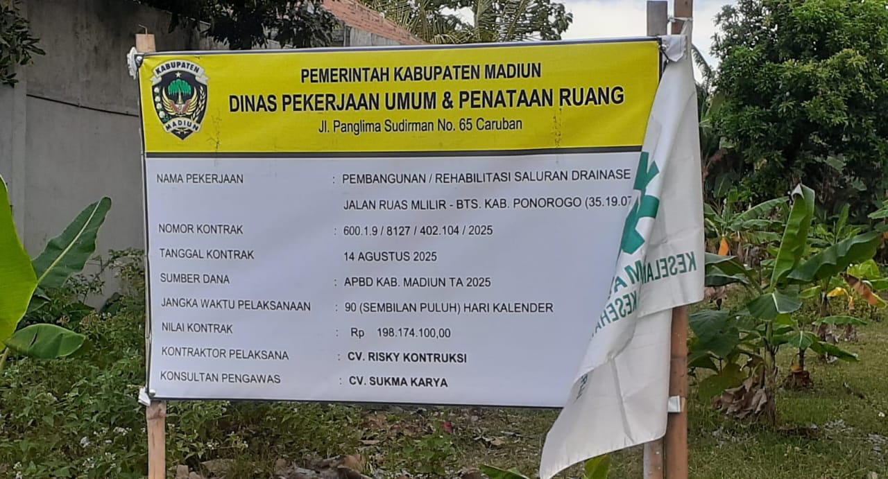 Pemerintah Kabupaten Madiun melalui Dinas Pekerjaan Umum dan Penataan Ruang (PUPR) resmi memulai pekerjaan rehabilitasi saluran drainase di ruas jalan Mlilir menuju perbatasan Ponorogo.