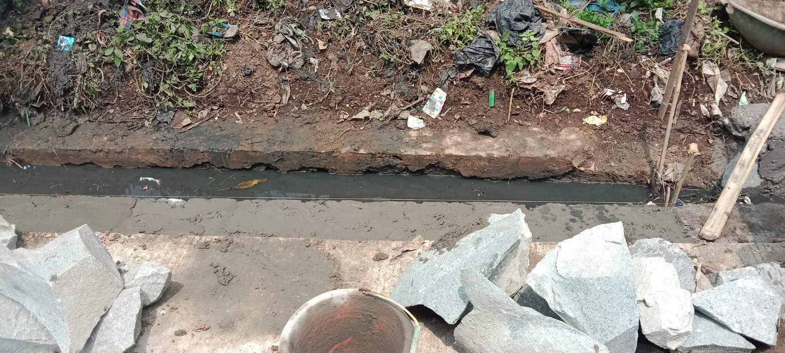 Ditemukan proyek Spal di kp Wadas Desa Tamiang Gunung kaler dikerjakan asal jadi dan tanpa ada pengawasan. (5/07/25).