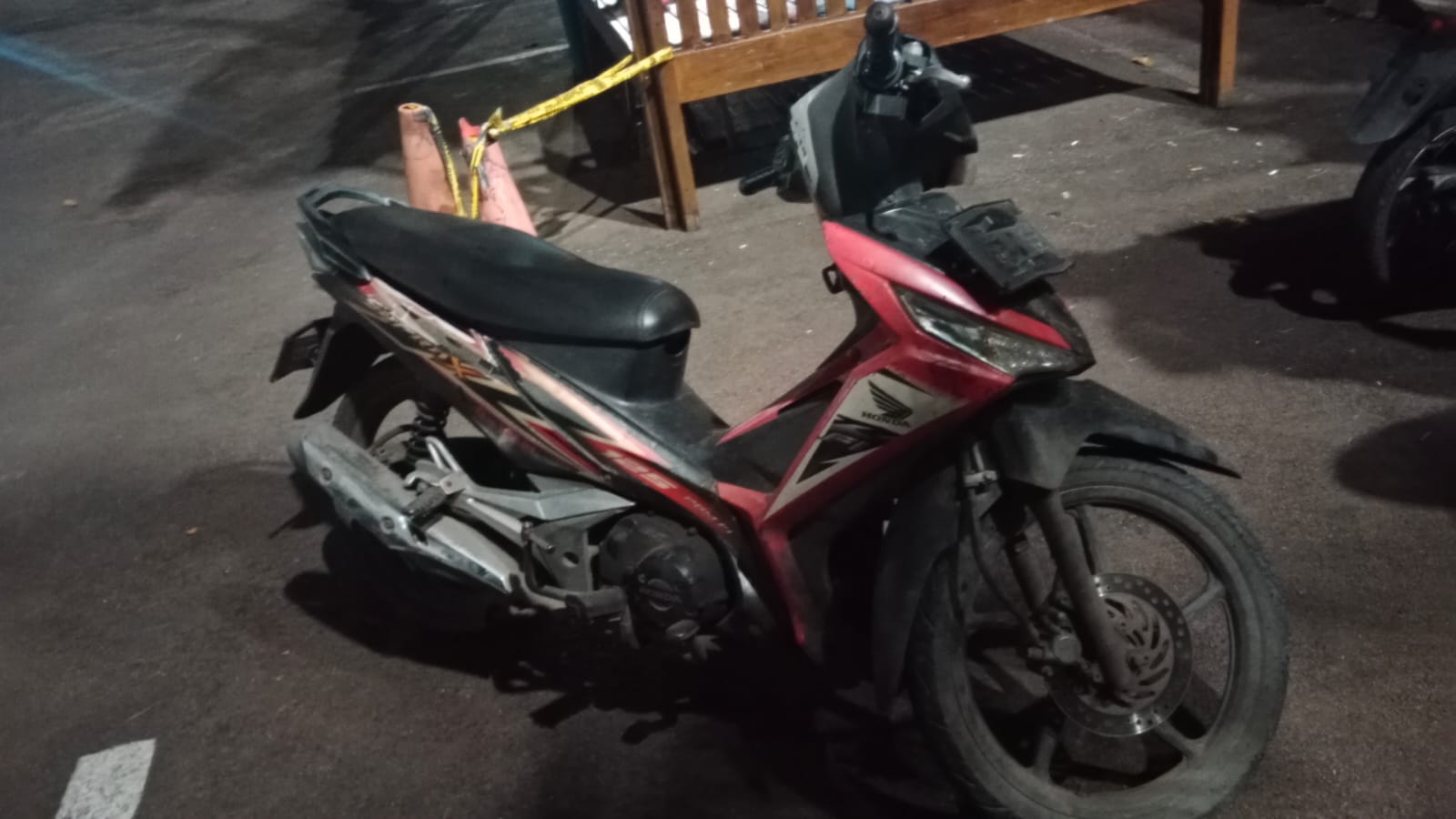 Polisi nyita sepeda motor Honda Supra X ireng lan abang kanthi nomer plat B-6144-CWM saka para tersangka.