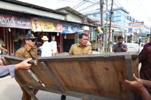Ing kesempatan iki, Bupati Mesyal Rasyid, sing langsung mbantu warga lan pedagang sing kanthi sukarela mbongkar bangunan sing ana ing ndhuwur gorong-gorong, nerangake yen kabeh pihak ing pitung unit lingkungan (RW) sing kena pengaruh wis sarujuk.