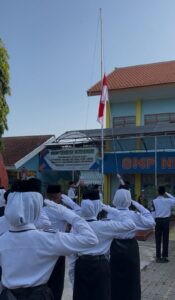 SMPN 8 Madiun ikut upacara di sekolah, semangat dan menghormati para pejuang.